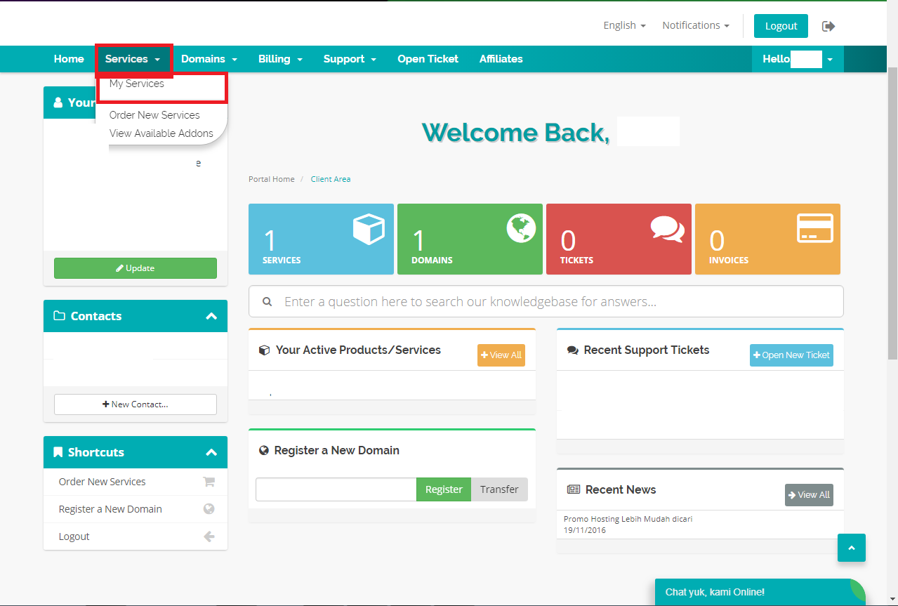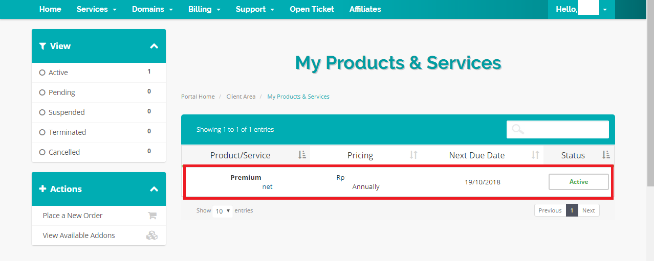 • Setelahnya, akan di alihkan ke halaman My Products & Services