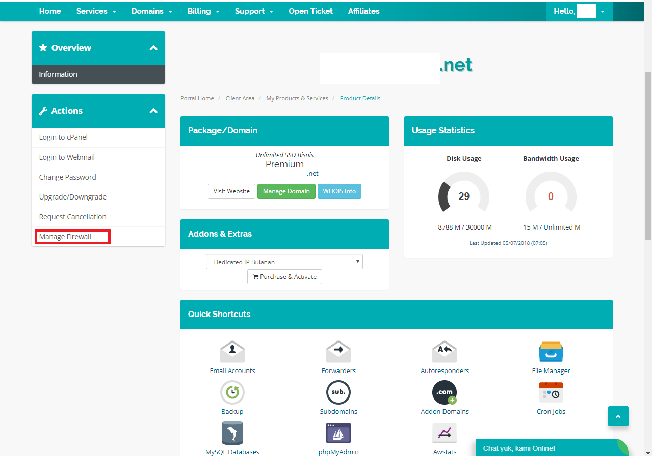 • Setelahnya akan di arahkan ke halaman Manage Firewall & Unblock IP