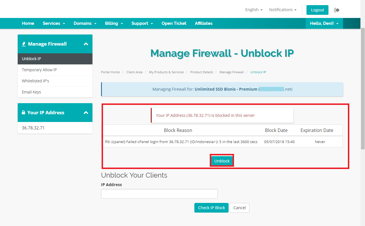 Cara Allow atau Whitelist IP Terblokir Melalui Member Area Nusantarahost