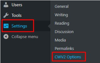- Pilih menu Settings, klik pilihan CWV2 Options.
