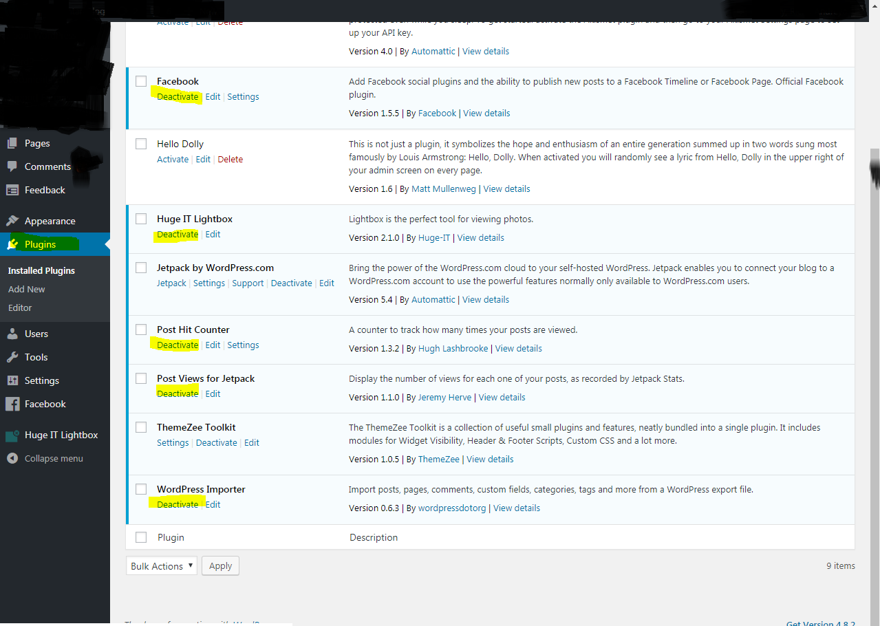 Untuk mengatasi masalah ini bisa dengan cara melakukan pengecekan dengan cara menonaktifkan semua plugin , lalu akses kembali website untuk memastikan apakah error masih ada. Jika error sudah tidak terjadi maka plugin dapat di aktifkan kembali.