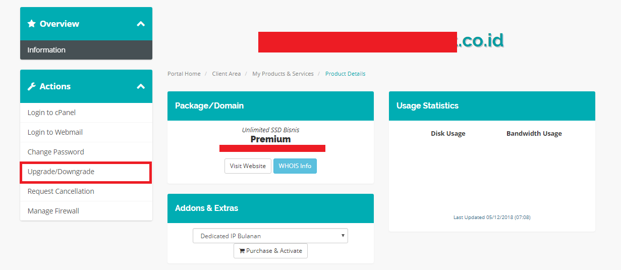 Setelah memilih layanan yang akan di upgrade atau Downgrade. Langkah selanjutnya adalah melakukan upgrade dengan cara.