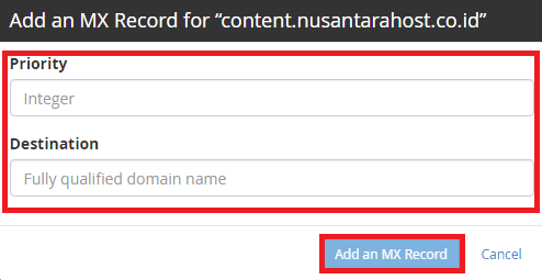 - Setelah semuanya terisi klik Add An MX Record