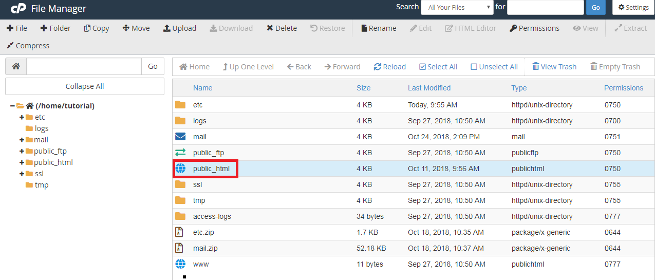 • Setelah berada pada halaman File Manager, Klik Public _html untuk masuk ke directory website.